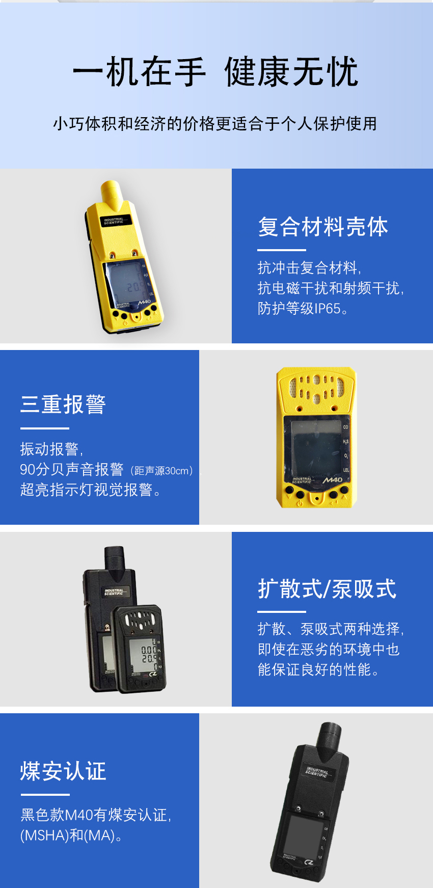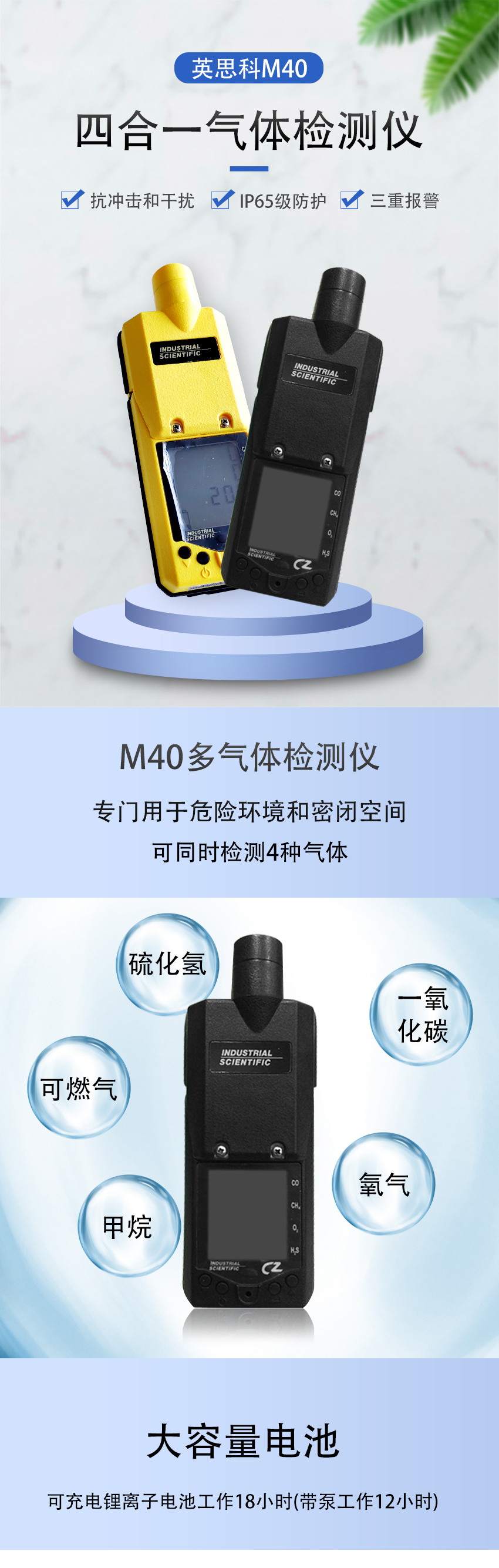 1、可同時檢測4種氣體:可燃氣體、O2、CO和H2S