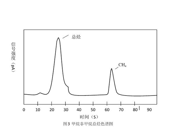 (3)采用兩個定量環,兩根色譜柱,一個F ID檢測器測定總烴和甲烷的濃度,色譜圖見圖3