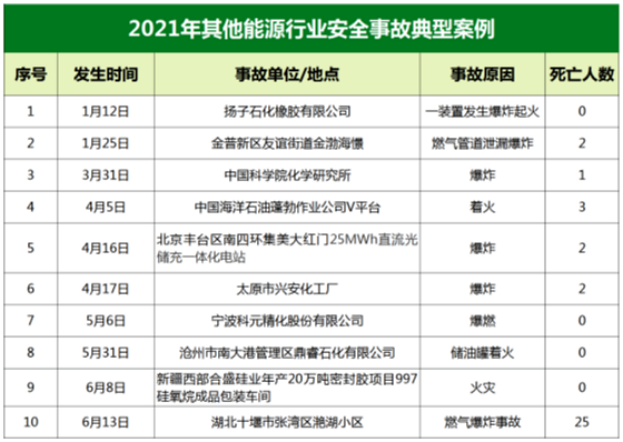 據(jù)國際能源網(wǎng)記者總結(jié):2021年上半年典型能源安全事故中,其他能源行業(yè)安全事故多為火災事故。天然氣、化工廠、儲能電站是火災事故隱患較為集中的領域,這些領域中防火、防爆是預防事故發(fā)生的重點工作。