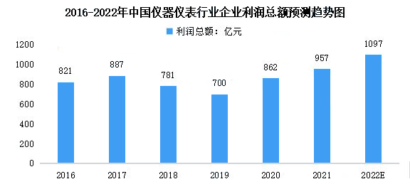 在行業規模不斷增長的同時,我國儀器儀表行業的產業鏈和技術實力也發展較快,形成了比較完整的產業體系和技術創新體系,拉近了和國際先進水平之間的差距。盈利能力方面,根據上海儀器儀表行業協會發布的數據,2017年我國儀器儀表行業企業利潤總額小幅上升后下降至2019年的700億元,2019-2021年呈增長的趨勢,2021年達957億元。其增長速度整體而言高于主營收入的增長速度,說明我國儀器儀表行業的盈利能力不斷提升,已步入高質量發展階段。中商產業研究院預測,2022年我國儀器儀表行業企業利潤總額將達1097億元。