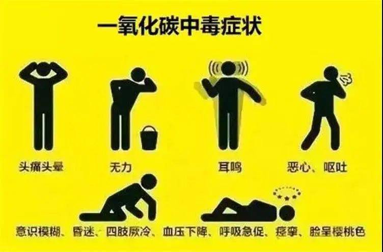 一氧化碳被人吸入肺中,與血紅蛋白結合,生成碳氧血紅蛋白,使血液失去運送氧氣的能力,造成人體組織缺氧,發生一系列中毒癥狀:輕度的可有頭痛頭暈、惡心、四肢無力等;中度或嚴重者可出現昏迷、虛脫,??刹l腦水腫、肺水腫、心肌損害、心律紊亂、傳導阻滯等,甚至危及生命,造成死亡。