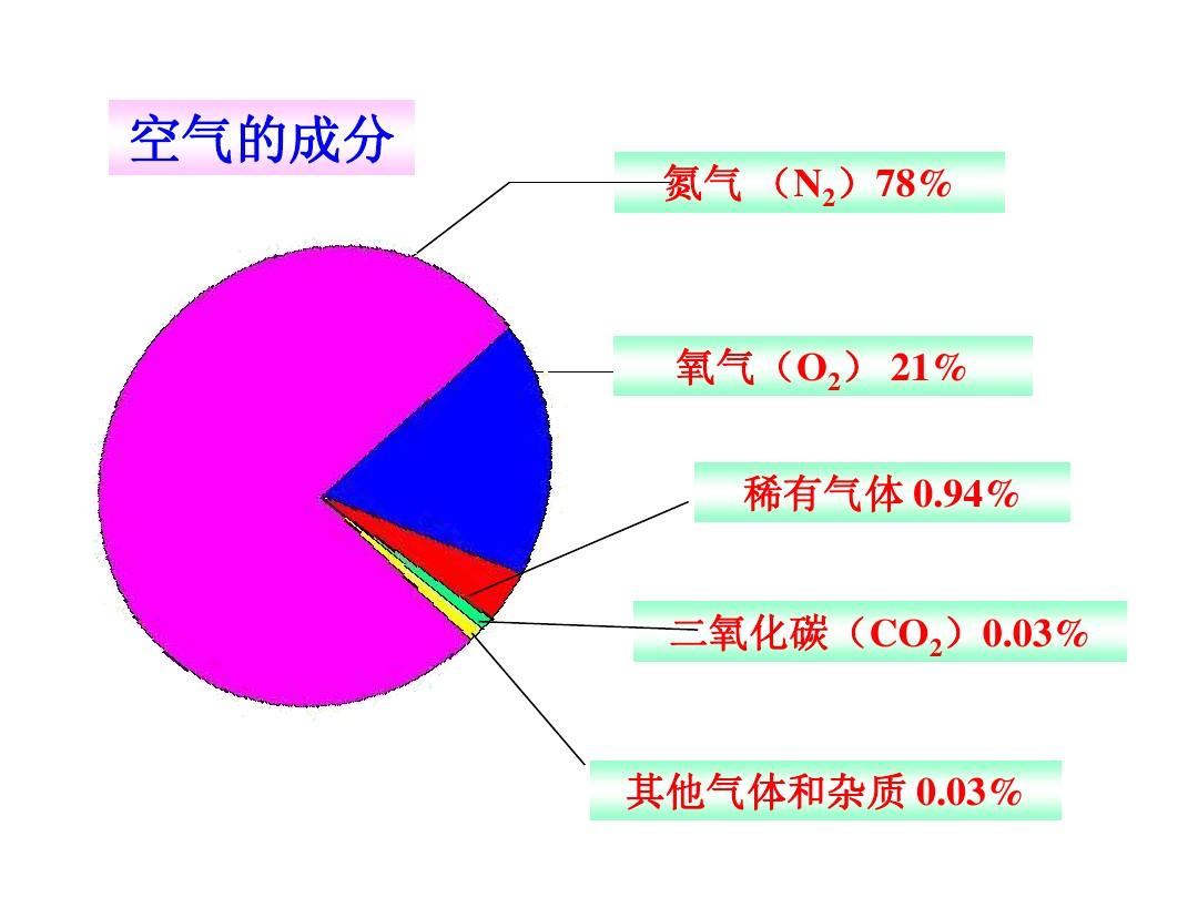 空氣是地球大氣層中的混合氣體,屬于混合物,主要由氮?dú)狻⒀鯕狻⑾∮袣怏w(氦、氖、氬、氪、氙、氡)、二氧化碳以及其他物質(zhì)(如水蒸氣、雜質(zhì)等)組合而成。其中氮?dú)獾捏w積分?jǐn)?shù)約為78%,氧氣的體積分?jǐn)?shù)約為21%,稀有氣體(氦、氖、氬、氪、氙、氡)的體積分?jǐn)?shù)約為0.934%,二氧化碳的體積分?jǐn)?shù)約為0.04%,其他物質(zhì)(如水蒸氣、雜質(zhì)等)的體積分?jǐn)?shù)約為0.02%。空氣的組成比例隨高度、氣壓而改變。歷史上人類曾認(rèn)為空氣是一種單一物質(zhì),直到法國科學(xué)家拉瓦錫通過實(shí)驗(yàn)首先得出了空氣是由氧氣和氮?dú)饨M成的結(jié)論。19世紀(jì)末,科學(xué)家們又通過大量的實(shí)驗(yàn)發(fā)現(xiàn),空氣里還有氦、氬、氙等稀有氣體。