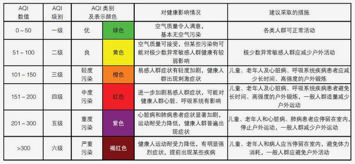 其具體標(biāo)準(zhǔn)如下:當(dāng)空氣污染指數(shù)達(dá)0-50時(shí)為1級;51-100時(shí)為2級;101-150時(shí)為3級;151-200為4級;201-300時(shí)為5級;300以上時(shí)為6級。其中3級屬于輕度污染,4級屬于中度污染,5級則屬于重度污染,6級則屬于嚴(yán)重污染。