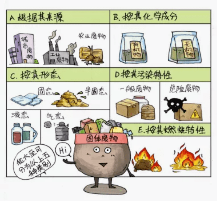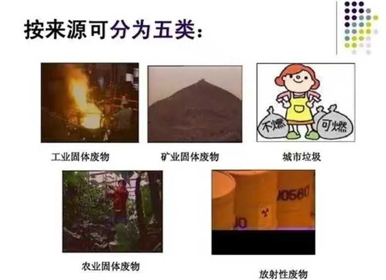 此外,固體廢物還可分為有毒和無毒的兩大類。有毒有害固體廢物是指具有毒性、易燃性、腐蝕性、反應性、放射性和傳染性的固體、半固體廢物。